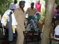 One of the tented camps, Bateleur Camp, hosts a give-away party to which all villagers are welcome. This year 80 boxes of clothing will be distributed. Even the empty boxes are a prize to the villagers! Food is served and everyone is happy inside & out.